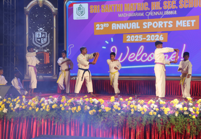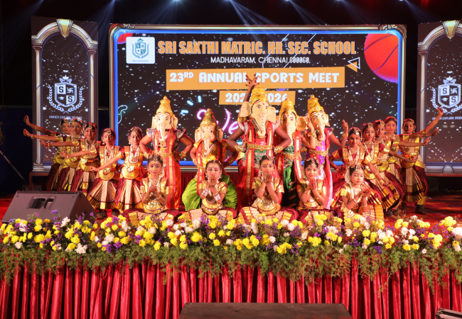 Sri Sakthi Matric. Hr. Sec. School, Madhavaram, successfully conducted our 23rd Annual Sports Meet 2025–26 on 31 January 2026 at Lord of Turfz, Madhavaram. The event was filled with energy, enthusiasm, and true sportsmanship as our students showcased their talents in various track and field events. The inspiring presence of our esteemed guests made the evening even more memorable, encouraging our young achievers to strive for excellence.